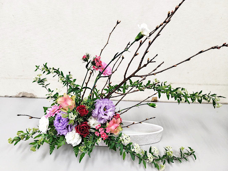 越谷市で活動している、株式会社ヨーロピアンフラワーデザイン連盟 所属の教室です。 この教室はお花のもつ価値を、くらしに、人生に、その願いを込めて一人でも多くの人々に、お花に慣れ親しんでいただくための活動をしています。 教室では、ブーケ, プリザーブ、コサージュ、フラワーアレンジメントと幅広く学ぶことが出来ます。 そして、販売店を通さない会員制ならではの低価格、しかも地域密着型の会ですので安心して学ぶことができます。 花の持つ美を新しい形で表現したフラワーアレンジメント、お気軽にご連絡ください。 気軽に月1回からでも参加できる自由参加制 いつでも通える地域密着型 豊富なコースで楽しめる週替わりのカリキュラム 受講料・入会金が無料のお花代のみ みんなで楽しめるサークル形式 2026年2月26日の作品 [ひなまつり] 花桃を使い、華やかな桃の節句アレンジ 2026年2月19日の作品 [桜花爛漫] 桜の枝ぶりを、なびくかのように大胆にアレンジ 2026年2月12日の作品 [ブルーミングハート] 花々で作る、ハート型のアレンジメント 2026年2月12日の作品 [ブルーミングハート] 花々で作る、ハート型のアレンジメント 2026年2月5日の作品 [フォーマルリニア―ル] リニア(線)とフォーム(形)の対比を表現する [ヴァーティカル] 垂直-直上する、という意味の基本形作品く 2026年1月22日の作品 [スノーホワイト] 白とグリーンで優しく上品なアレンジ [ウィンターヒーリング] 香る花々を伸びやかに凛々しく 2026年1月15日の作品 [四角錐] 初級コースの基本形 [ユーバーシュナイデント] 花材のラインの交差が美しいデザイン 2026年1月8日の作品 [新春アレンジ] 植物のフォルムを活かし、美しく伸びやかなデザイン 2025年12月28日の作品 [お正月] 松,菊,葉牡丹、等を使い新年のお祝いを華やかに 2025年12月17日の作品 [しめ縄] 和洋どちらの空間にも映えるモダンスタイル 2025年12月10日の作品 [Xmasアレンジ] 温かみと自然なツリー型デザイン 2025年12月3日の作品 [ヴィゲタディーフ] 自然界の植物の生長の様子を表現した作品 [ファン](扇) 孔雀が羽を広げたような、放射状のラインが美しい基本型作品 2025年11月27日の作品 [トゥインクルムーン](ドライフラワー作品) 月の輝きに星を添えたナチュラルな壁飾り 2025年11月20日の作品 [アドベント] Xmasの4週間前から楽しむ、4本のキャンドルを使った作品 [ブルーエトワール] 青いキャンドルを使った、幻想的な冬景色を表現 2025年11月13日の作品 [ダイアモンド] ホリゾンタルの両面構成で、ひし型の基本型作品 [フリーセント] 下への流れを、優しく表現した作品 2025年11月5日の作品 [ハピネスブーケ] 胡蝶蘭と水引,ビーズで、可愛いらしい作品に 2025年10月29日の作品 [ポエティック] 花の形、表情、植生を活かした、テーブルアレンジ 2025年10月23日の作品 [ナチュラルクラシカル] 植生感を活かし、花材の持つ自然な、S字ラインを表現したアレンジ 2025年10月15日の作品 [パンプキンチュチュ] ユニークで可愛い、ハロウィン作品 2025年10月9日の作品 [ラグジュアリーオーキッド] 色とりどりの蘭で、贅沢な空間を表現 2025年10月1日の作品 [アンティークポット] シックな色合いの秋アレンジ [スクエアレイヤリング] スクエアベースに葉のラインをリンクさせた作品 2025年9月24日の作品 [秋気] 秋の訪れを表現した,趣深い作品 2025年9月17日の作品 [セレニティデコール] 光触媒加工された花材で作成した、壁掛け 2025年9月11日の作品 [ラップフラワー] ナチュラルな素材で、優しく包み込むアレンジに 2025年9月3日の作品 [オブジェ] バランの葉を帆に見立て、船を表現した作品