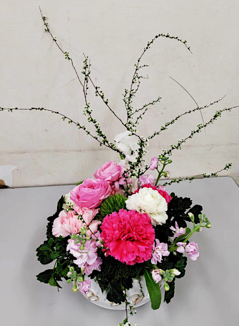 越谷市で活動している、株式会社ヨーロピアンフラワーデザイン連盟 所属の教室です。 この教室はお花のもつ価値を、くらしに、人生に、その願いを込めて一人でも多くの人々に、お花に慣れ親しんでいただくための活動をしています。 教室では、ブーケ, プリザーブ、コサージュ、フラワーアレンジメントと幅広く学ぶことが出来ます。 そして、販売店を通さない会員制ならではの低価格、しかも地域密着型の会ですので安心して学ぶことができます。 花の持つ美を新しい形で表現したフラワーアレンジメント、お気軽にご連絡ください。 気軽に月1回からでも参加できる自由参加制 いつでも通える地域密着型 豊富なコースで楽しめる週替わりのカリキュラム 受講料・入会金が無料のお花代のみ みんなで楽しめるサークル形式 2026年3月4日の作品 [夢見月] 柔らかな色の花々を、リズミカルに表現した作品 2026年2月26日の作品 [ひなまつり] 花桃を使い、華やかな桃の節句アレンジ 2026年2月19日の作品 [桜花爛漫] 桜の枝ぶりを、なびくかのように大胆にアレンジ 2026年2月12日の作品 [ブルーミングハート] 花々で作る、ハート型のアレンジメント 2026年2月12日の作品 [ブルーミングハート] 花々で作る、ハート型のアレンジメント 2026年2月5日の作品 [フォーマルリニア―ル] リニア(線)とフォーム(形)の対比を表現する [ヴァーティカル] 垂直-直上する、という意味の基本形作品く 2026年1月22日の作品 [スノーホワイト] 白とグリーンで優しく上品なアレンジ [ウィンターヒーリング] 香る花々を伸びやかに凛々しく 2026年1月15日の作品 [四角錐] 初級コースの基本形 [ユーバーシュナイデント] 花材のラインの交差が美しいデザイン 2026年1月8日の作品 [新春アレンジ] 植物のフォルムを活かし、美しく伸びやかなデザイン 2025年12月28日の作品 [お正月] 松,菊,葉牡丹、等を使い新年のお祝いを華やかに 2025年12月17日の作品 [しめ縄] 和洋どちらの空間にも映えるモダンスタイル 2025年12月10日の作品 [Xmasアレンジ] 温かみと自然なツリー型デザイン 2025年12月3日の作品 [ヴィゲタディーフ] 自然界の植物の生長の様子を表現した作品 [ファン](扇) 孔雀が羽を広げたような、放射状のラインが美しい基本型作品 2025年11月27日の作品 [トゥインクルムーン](ドライフラワー作品) 月の輝きに星を添えたナチュラルな壁飾り 2025年11月20日の作品 [アドベント] Xmasの4週間前から楽しむ、4本のキャンドルを使った作品 [ブルーエトワール] 青いキャンドルを使った、幻想的な冬景色を表現 2025年11月13日の作品 [ダイアモンド] ホリゾンタルの両面構成で、ひし型の基本型作品 [フリーセント] 下への流れを、優しく表現した作品 2025年11月5日の作品 [ハピネスブーケ] 胡蝶蘭と水引,ビーズで、可愛いらしい作品に 2025年10月29日の作品 [ポエティック] 花の形、表情、植生を活かした、テーブルアレンジ 2025年10月23日の作品 [ナチュラルクラシカル] 植生感を活かし、花材の持つ自然な、S字ラインを表現したアレンジ 2025年10月15日の作品 [パンプキンチュチュ] ユニークで可愛い、ハロウィン作品 2025年10月9日の作品 [ラグジュアリーオーキッド] 色とりどりの蘭で、贅沢な空間を表現 2025年10月1日の作品 [アンティークポット] シックな色合いの秋アレンジ [スクエアレイヤリング] スクエアベースに葉のラインをリンクさせた作品 2025年9月24日の作品 [秋気] 秋の訪れを表現した,趣深い作品 2025年9月17日の作品 [セレニティデコール] 光触媒加工された花材で作成した、壁掛け 2025年9月11日の作品 [ラップフラワー] ナチュラルな素材で、優しく包み込むアレンジに 2025年9月3日の作品 [オブジェ] バランの葉を帆に見立て、船を表現した作品